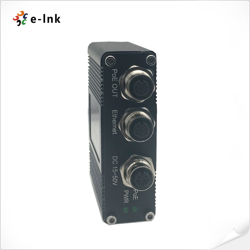 EN50155 Industri 1 port 10/100/1000M M12 PoE Injector12~48VDC Daya Masuk |