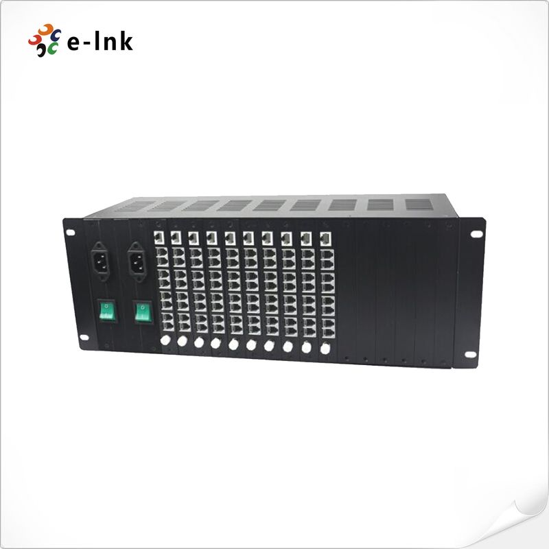 19" 4U Rack-mount Chassis, 16-Slot, 16pcs 4CH atau8Jenis Kartu CHMux serat telepon dapat dimasukkan ke dalam Chassis, Dual Power Supply |